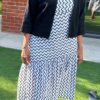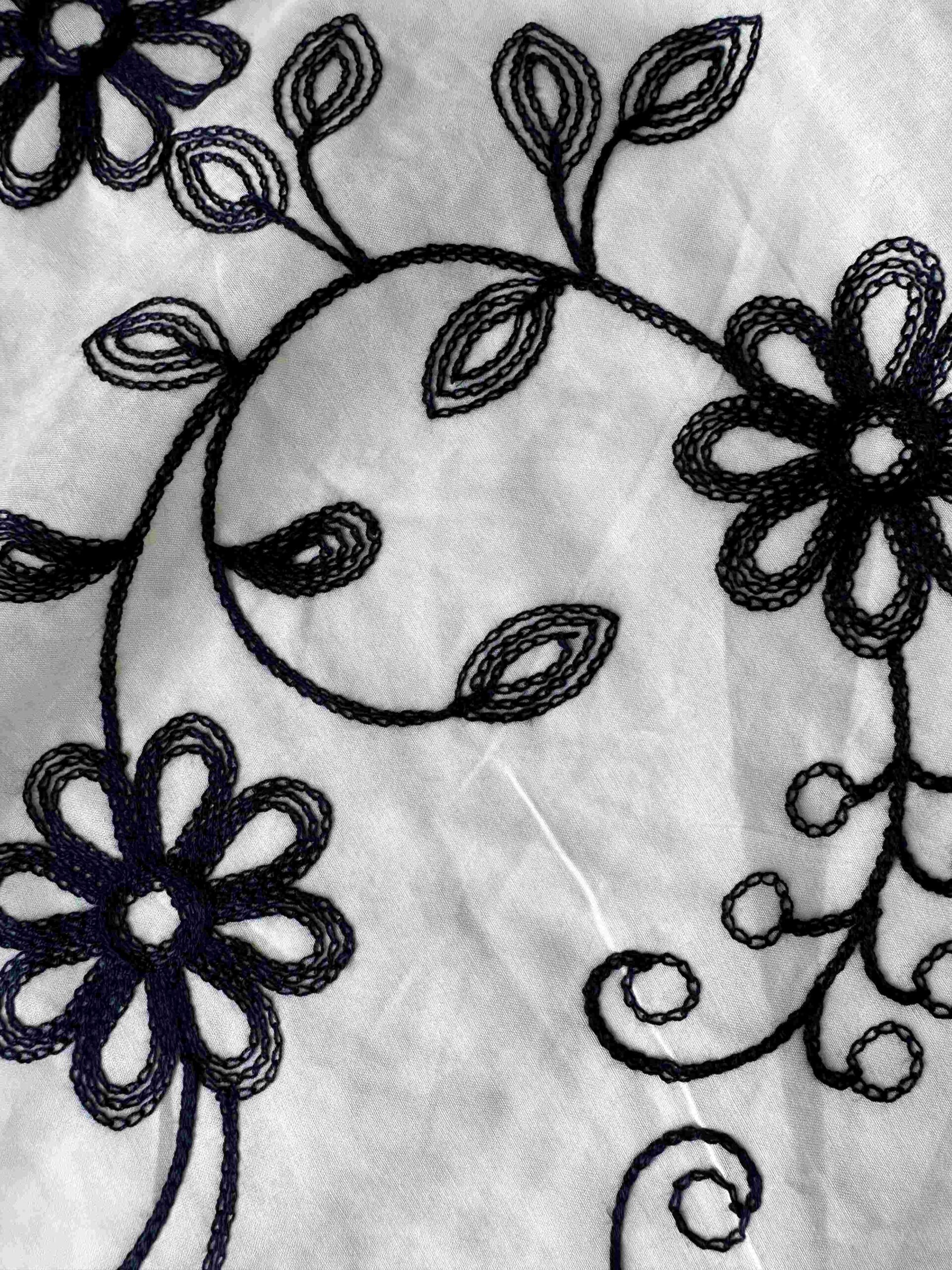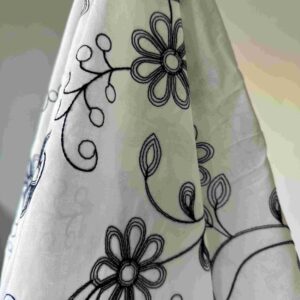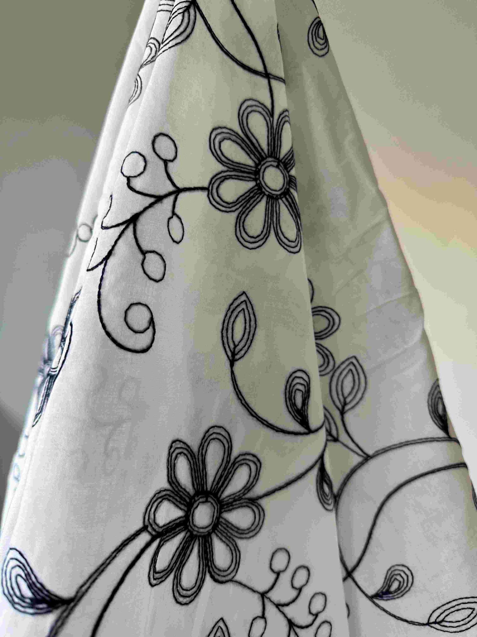 Cotton white fabric with all over black  colour shadow embroidery flower design .