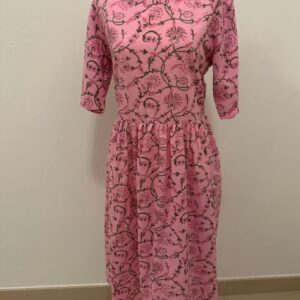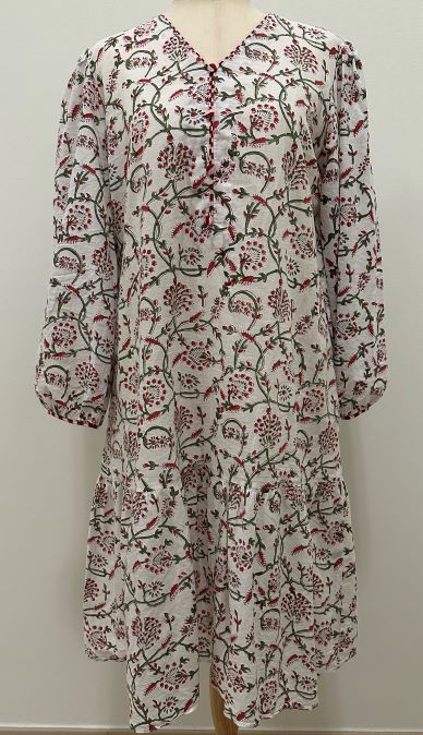 Women summer midi dress long sleeves and “V neck with contrast pure cotton with allover print.